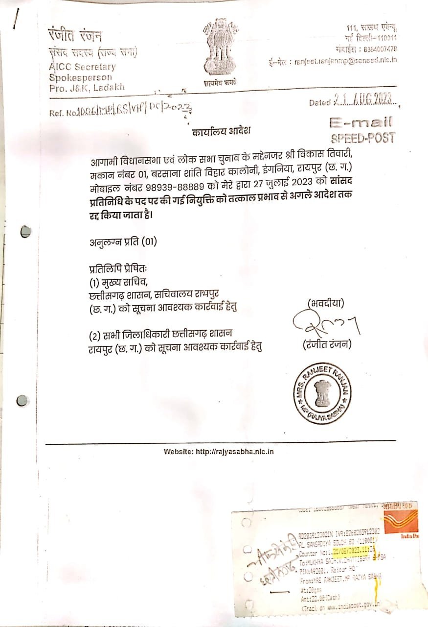 CG News: कांग्रेस नेता विकास तिवारी को एक और बड़ा झटका लगा है. झीरम घाटी नक्सल कांड को लेकर पार्टी लाइन से हटकर दिए गए बयानों के बाद पहले उन्हें वरिष्ठ प्रवक्ता पद से हटाया गया, फिर कांग्रेस की प्राथमिक सदस्यता से निष्कासित कर दिया गया. अब एक और बड़ी कार्रवाई करते हुए उन्हें राज्यसभा सांसद रंजीता रंजन के सांसद प्रतिनिधि पद से भी हटा दिया गया है.