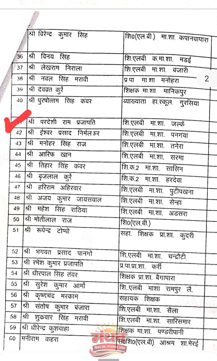 आरोप हैं की उक्त जारी अधिकृत आदेश के तहत 24 अप्रैल से 28 अप्रैल के बीच ग्राम सभाओं के सफल संचालन के लिए प्रभारी अधिकारियों की ड्यूटी लगाई गई है, लेकिन जारी सूची में एक ऐसे व्यक्ति का नाम भी शामिल कर दिया गया है जिनका तीन माह पहले ही निधन हो चुका है। जानकारी के अनुसार, पूर्व माध्यमिक शाला जल्के में शिक्षक के रूप में पदस्थ रहे प्रदेशी राम प्रजापति (क्रमांक 41) का नाम प्रभारी अधिकारियों की सूची में दर्ज है, जबकि उनकी मृत्यु 15 जनवरी को हो चुकी है। इसके बावजूद उन्हें ग्रामसभा का प्रभारी नियुक्त कर दिया गया, जो प्रशासनिक कार्यप्रणाली पर गंभीर सवाल खड़े करता है।