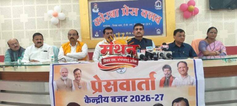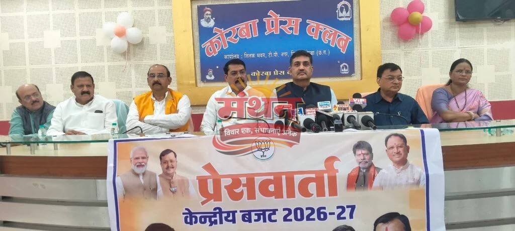 कोरबा (मंथन) केंद्रीय बजट 2026-27 को लेकर प्रेस क्लब तिलक भवन में आयोजित पत्रकार वार्ता में विकास, उद्योग और जनकल्याण के मुद्दों पर चर्चा हुई। उक्त पत्रकार वार्ता को अध्यक्ष छत्तीसगढ़ खनिज विकास निगम (कैबिनेट मंत्री दर्जा) सौरभ सिंह ने संबोधित करते हुए कहा कि “केंद्रीय बजट को विकासोन्मुख, रोजगार सृजन करने वाला और जनहितकारी बताते हुए कहा कि यह बजट देश के साथ-साथ छत्तीसगढ़ और विशेष रूप से कोरबा के लिए नए अवसरों के द्वार खोलने वाला है। उन्होंने आगे कहा कि बजट में बुनियादी ढांचे, खनिज क्षेत्र, उद्योग विस्तार और रोजगार सृजन को प्राथमिकता दी गई है, जिससे प्रदेश की अर्थव्यवस्था को नई गति मिलेगी और युवाओं को बड़े स्तर पर रोजगार के अवसर प्राप्त होंगे। पत्रकारवार्ता में उद्योग मंत्री लखन लाल देवांगन, भाजपा जिलाध्यक्ष गोपाल मोदी, महापौर संजू देवी राजपूत, सह संभाग प्रभारी रायपुर डॉ. राजीव सिंह, पूर्व महापौर जोगेश लांबा, पूर्व जिलाध्यक्ष अशोक चावलानी उपस्थित रहे।