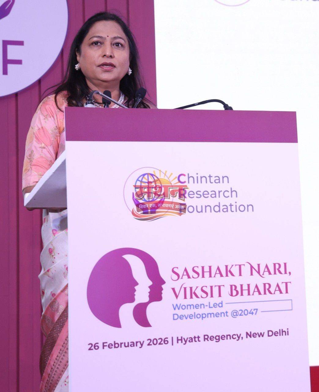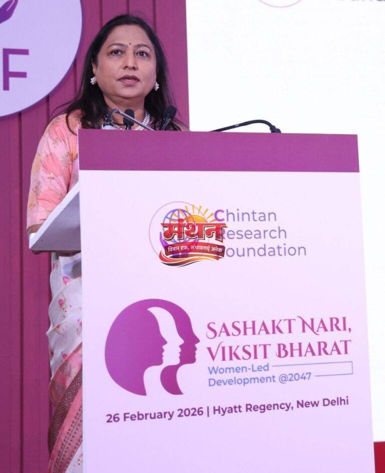 कोरबा (मंथन) पब्लिक पॉलिसी थिंक टैंक चिंतन रिसर्च फाउंडेशन नई दिल्ली द्वारा आयोजित ‘सशक्त नारी, विकसित भारत’ सम्मेलन में डॉ. प्रीति अदाणी, चेयरपर्सन, अदाणी फाउंडेशन ने कहा कि विकसित भारत 2047 की दिशा में भारत की विकास यात्रा की मुख्य आधार महिलाएँ ही हैं और उन्हें इस बदलाव की असली निर्माता के रूप में पहचाना जाना चाहिए। केंद्रीय महिला एवं बाल विकास मंत्री अन्नपूर्णा देवी का स्वागत करते हुए डॉ. अदाणी ने महिलाओं के नेतृत्व वाले विकास को मिल रहे नीति समर्थन की सराहना की, साथ ही कहा कि अब केवल इरादों से आगे बढ़कर महिलाओं की लगातार आर्थिक भागीदारी सुनिश्चित करनी होगी।