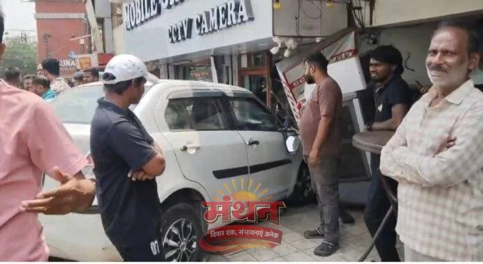 कोरबा (मंथन) जानकारी के अनुसार एक कार में सवार होकर तीन युवक ट्रांसपोर्ट नगर कोरबा से पुराने शहर की ओर आ रहे थे। अचानक वाहन अनियंत्रित होकर एक बाइक सवार को टक्कर मारते हुए सुनालिया चौक स्थित एक मोबाइल दुकान में जा घुसी। इस दुर्घटना के बाद वाहन में सवार तीनों युवकों को पकड़ लिया। पुलिस ने तीनों को हिरासत में ले लिया हैं। आगे की कार्यवाही जारी हैं।