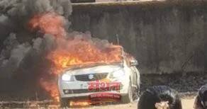 You are at:Home»कोरबा»(कोरबा) कार में लगी भीषण आग-पूरी तरह स्वाहा