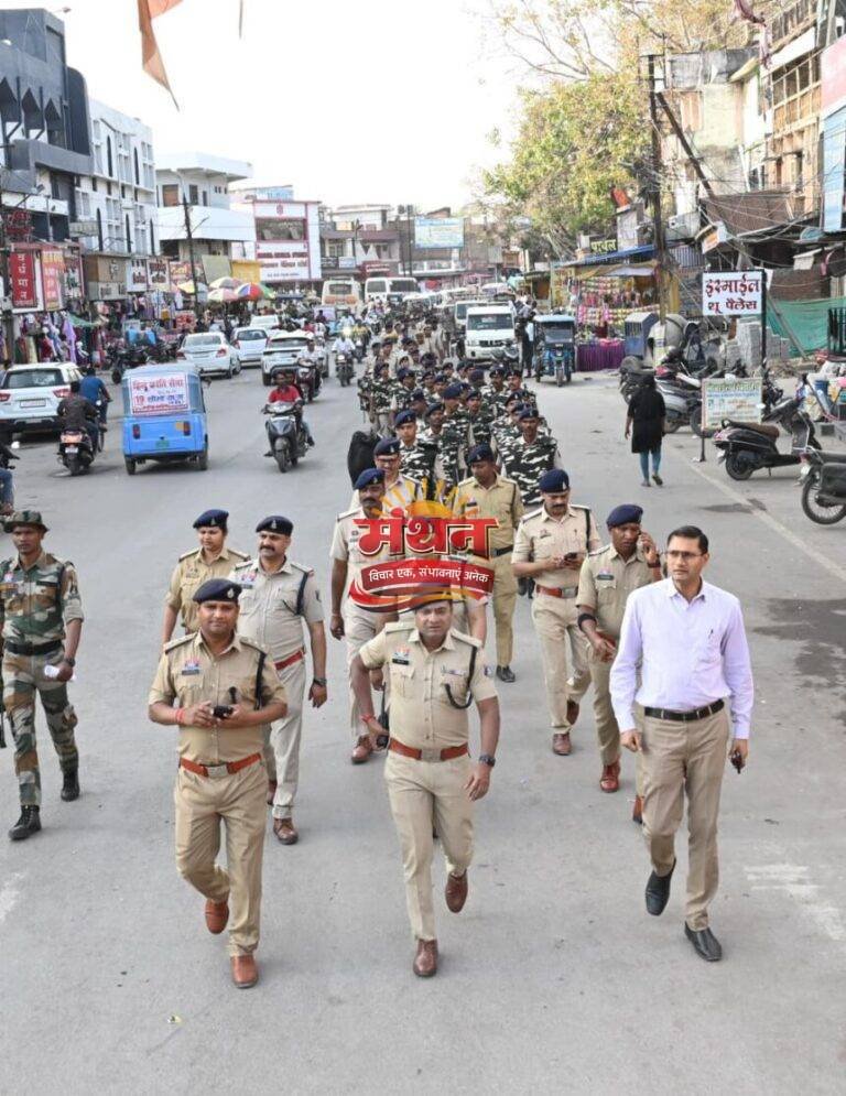 जिला मुख्यालय में फ्लैग मार्च थाना कोतवाली से प्रारंभ होकर शहर के प्रमुख चौक-चौराहों से होते हुए कोसाबाड़ी क्षेत्र तक निकाला गया। मार्च में लगभग 200 से अधिक पुलिस अधिकारी एवं कर्मचारी शामिल हुए। फ्लैग मार्च के माध्यम से आम नागरिकों में सुरक्षा का भाव जागृत किया गया तथा असामाजिक तत्वों को कड़ी चेतावनी दी गई।