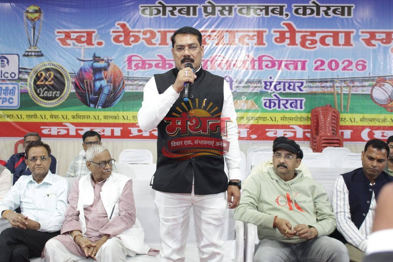कोरबा (मंथन) प्रेस क्लब कोरबा द्वारा आयोजित स्व. केशवलाल मेहता क्रिकेट प्रतियोगिता 2026 के चतुर्थ दिवस तीन मुकाबले खेले गए। पहला मुकाबला कोरबा प्रेस क्लब बनाम अधिवक्ता 11, दूसरा मैच एनटीपीसी बनाम एसईसीएल कुसमुंडा व अंतिम मुकाबला अदानी पावर विरुद्ध कमिश्नर 11 के बीच खेला गया। पहले मैच के मुख्य अतिथि स्टेट बार मेंबर रविंद्र पाराशर रहे। विशिष्ट के तौर पर बाल कल्याण समिति के पूर्व अध्यक्ष मनीष शर्मा, जिला अधिवक्ता संघ के अध्यक्ष गणेश कुलदीप, वरिष्ठ अधिवक्ता अब्दुल रहमान, वरिष्ठ पत्रकार विकास जोशी, किशोर शर्मा, जयप्रकाश टमकोरिया, विश्वनाथ केडिया की उपस्थिति ने कार्यक्रम की शोभा बढ़ाई। पहले मुकाबले में कोरबा प्रेस क्लब की टीम ने पहले बल्लेबाजी करते हुए 4 विकेट के नुकसान पर 94 रन बनाए। लक्ष्य का पीछा करने उतरी अधिवक्ता 11 की टीम ने 2 विकेट के नुकसान पर लक्ष्य हासिल कर लिया। मुकाबला अधिवक्ता 11 ने 8 विकेट से जीता।