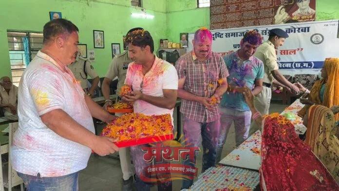 हमेशा की तरह होली त्यौहार के दूसरे दिन पुलिस वालों ने होली का त्यौहार मनाया। पुलिस की यह होली खास थी, हुड़दंग की बजाय पुलिसकर्मियों ने अपने अधिकारियों के साथ मिलकर बुजुर्गों के साथ होली खेली। गुलाल के साथ ही पुष्प वर्षा कर बुजुर्गों से आशीर्वाद प्राप्त किया, हसदेव नदी के तट पर मां सर्वमंगला के परिसर में निर्मित वृद्धश्रम में बड़ी संख्या में पुलिस के अधिकारी और जवान दिखाई दिए। पुलिस के अधिकारी कर्मचारी बुजुर्गों के बीच होली खेलने आए थे।