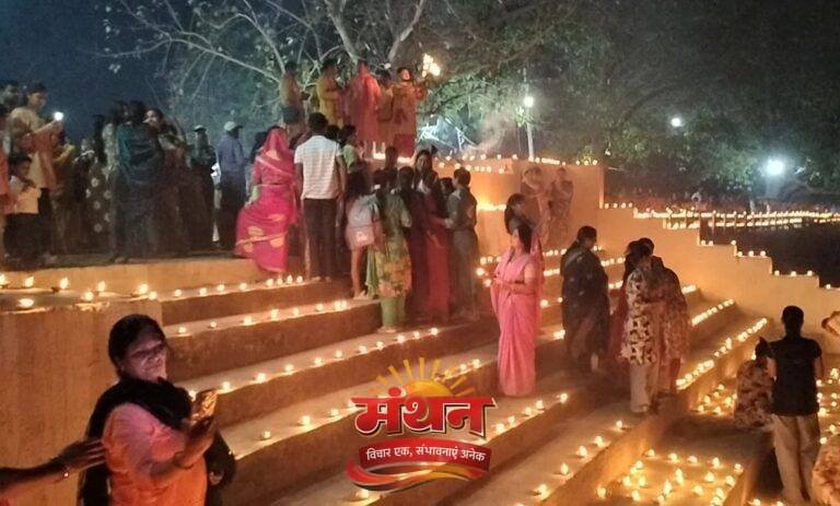You are at:Home»कोरबा»(कोरबा) हिन्दू नववर्ष के अवसर पर 21 हजार दीपों से जगमगाया राधासागर तालाब