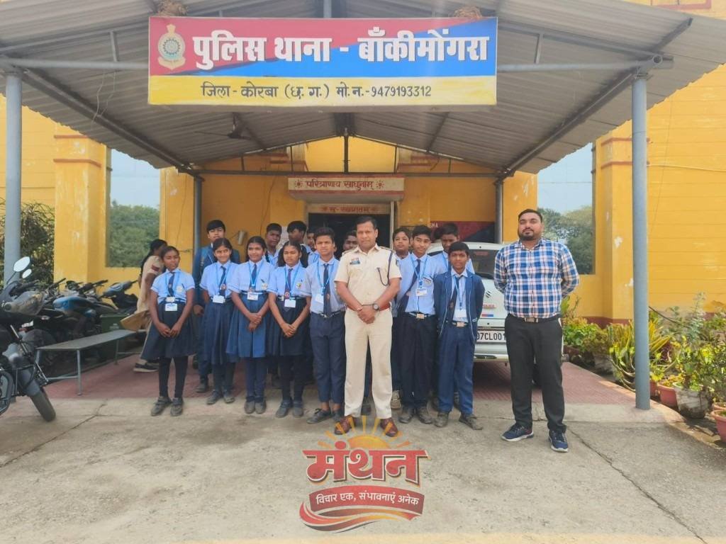 कोरबा (मंथन) शासकीय स्वामी आत्मानंद उत्कृष्ट अंग्रेजी माध्यम विद्यालय के विद्यार्थियों ने शैक्षणिक भ्रमण के तहत बांकीमोंगरा थाना परिसर का दौरा किया। इस दौरान विद्यार्थियों ने पुलिस कार्यप्रणाली को करीब से समझा और पुलिसिंग विषय पर निबंध भी लिखा।