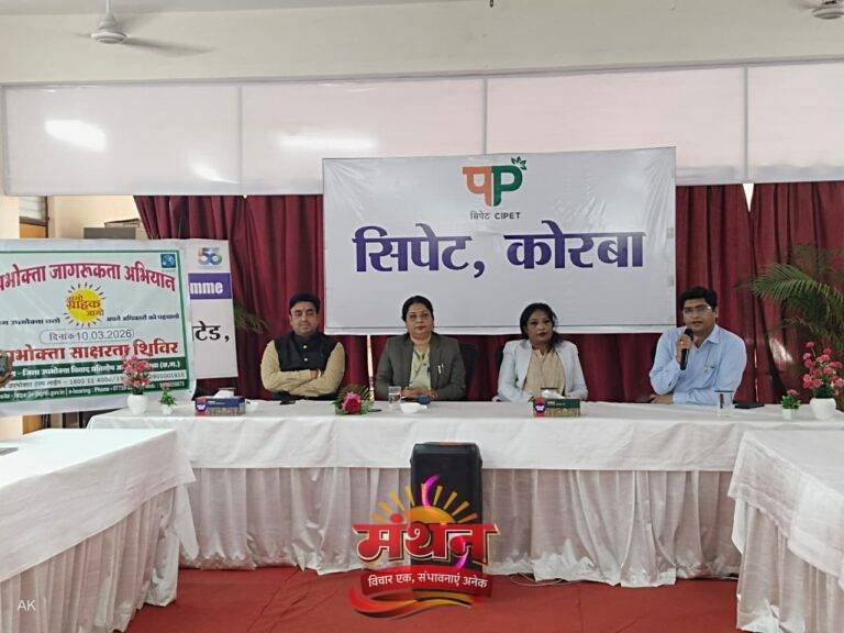 कोरबा (मंथन) कोरबा जिला उपभोक्ता आयोग ने सिपेट में उपभोक्ता जागरूकता शिविर का आयोजन जहां छात्र/छात्राओ को उपभोक्ता जागरूकता कानून के संबंध में विस्तार पूर्वक जानकारी देते हुए उनके जिज्ञासाओं का समाधान किया गया। छग राज्य उपभोक्ता आयोग के निर्देशानुसार कोरबा जिला उपभोक्ता आयोग द्वारा ग्रामीण क्षेत्रो में उपभोक्ता जागरूकता शिविर के माध्यम से ग्रामीणो को उपभोक्ता कानून की जानकारी देते हुए उन्हे उनके अधिकारो से अवगत कराया जा रहा है।