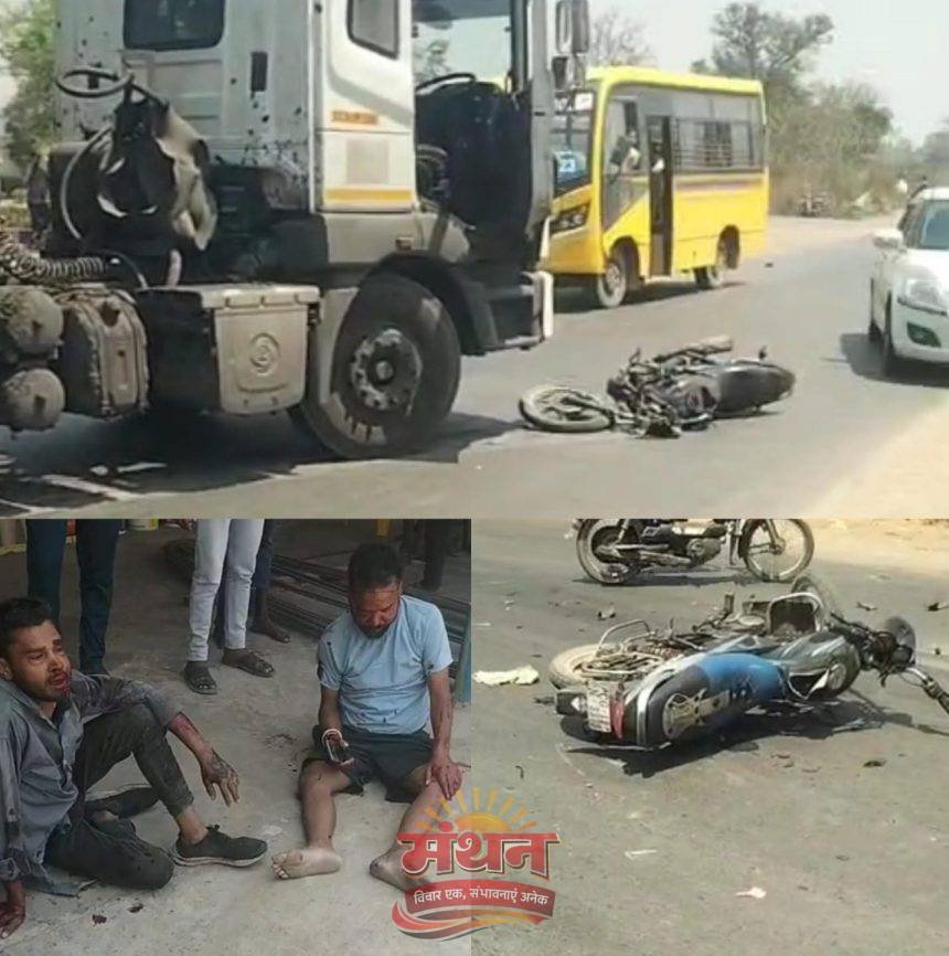 कोरबा (मंथन) कोरबा-चांपा सड़क मार्ग अंतर्गत भैसमा-उरगा मुख्य मार्ग पर कूकरीचोली पेट्रोल पंप के पास एक कोयला लदा ट्रेलर अनियंत्रित हो कर दो बाइक सवारों को टक्कर मार दी। हादसे में कोरबा जनपद के पूर्व उपाध्यक्ष विक्की कंवर सहित चार लोग गंभीर रूप से घायल हो गए।