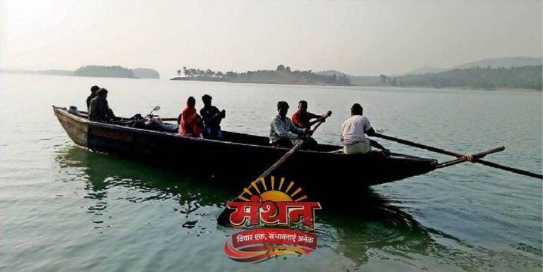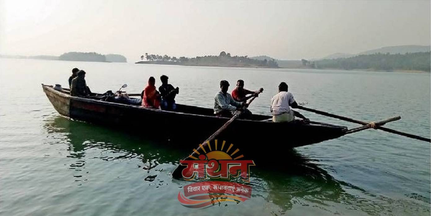 * ग्रामीण नाव से पार कर पहुंचते हैं केंदई
