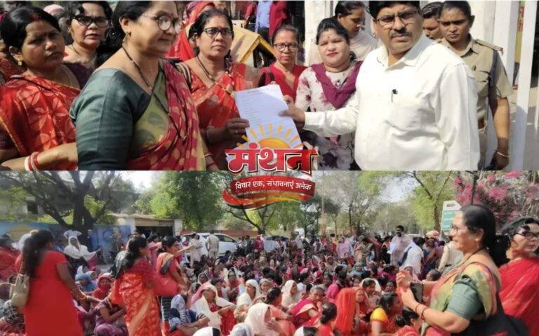 कोरबा (मंथन) 3 सूत्रीय मांगों को लेकर आंगनबाड़ी कार्यकर्ता सहायिकाओं ने 2 दिवसीय हड़ताल के दूसरे दिन भी धरना स्थल आईटीआई तानसेन चौक में हुंकार भरी। जिसकी वजह से आंगनबाड़ी केंद्रों में ताले लटके रहे। धरना विरोध प्रदर्शन उपरांत रैली निकाल कर प्रधानमंत्री, मुख्यमंत्री व अन्य मंत्रियों के नाम से डिप्टी कलेक्टर तुलाराम भारद्वाज को ज्ञापन सौंपा। इससे नौनिहालों की पोषण आहार गतिविधि प्रभावित रही।